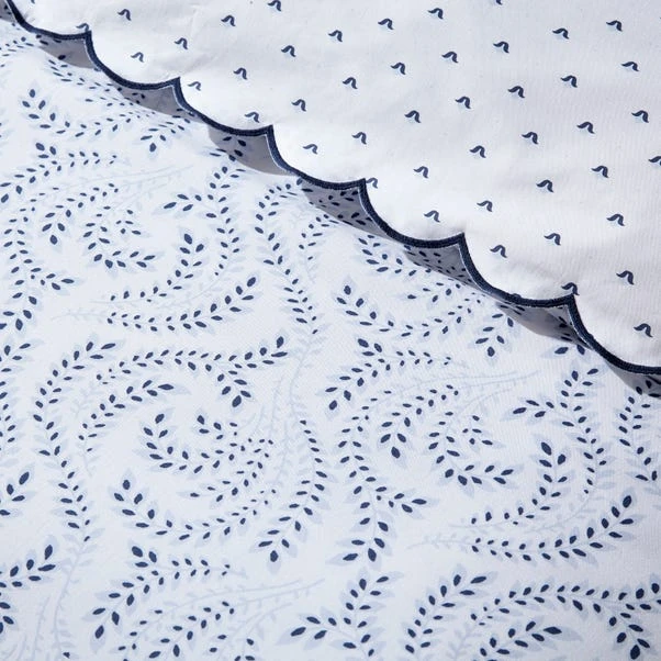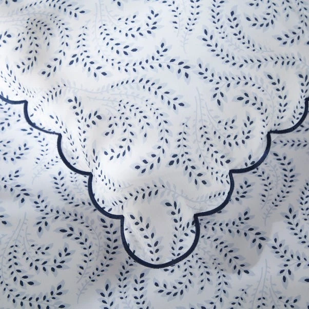 Here’s to Dorma’s new Eventide collection, which features this stunning duvet and pillowcase set inspired by vintage French wallpaper. Boasting a white base with navy and soft blue print, it is exquisitely finished with a navy stitched scallop edge for extra dreaminess. Made from our classic 300 thread count cotton sateen, this set layers up beautifully with our Sea Vine collection for a French country coastal style ensemble.