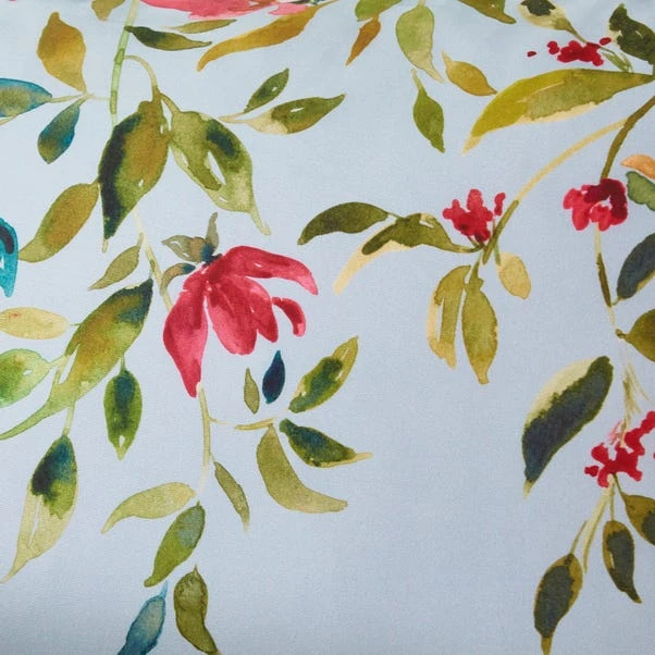 Hand painted modern blooms in saturated colour, pop against the soft teal background on these Modern Romance eyelet curtains. Rich and luxurious with contrast piping adding extra luxe detail. These curtains feature a blackout lining, minimising unwanted light when sleeping. Co-ordinating bedding, bedspread, pillowshams and curtains available.